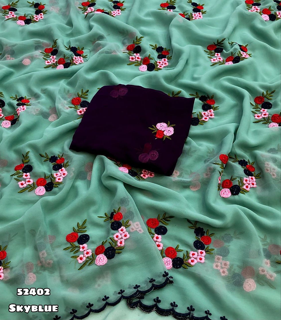 Georgette Embroidered Saree with Scalloped Border