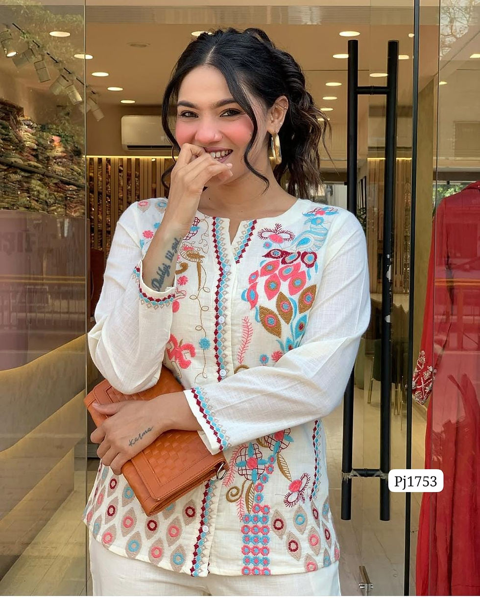 Embroidered Summer Cotton Coord Set (Top & Plazo)