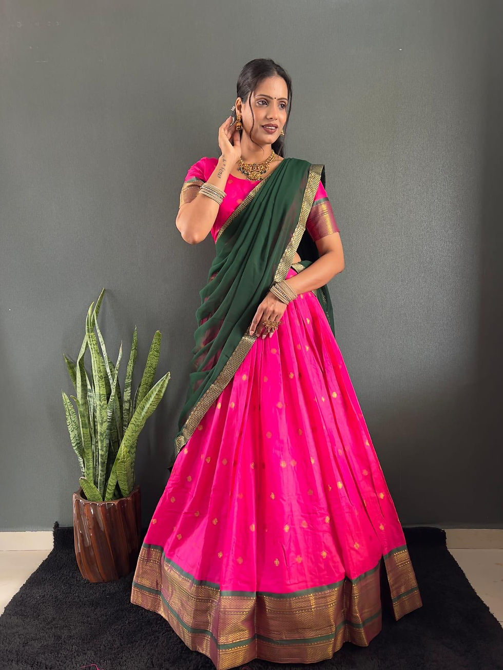 Rangoli Silk Dhawani Set with Kanchipuram-Inspired Design