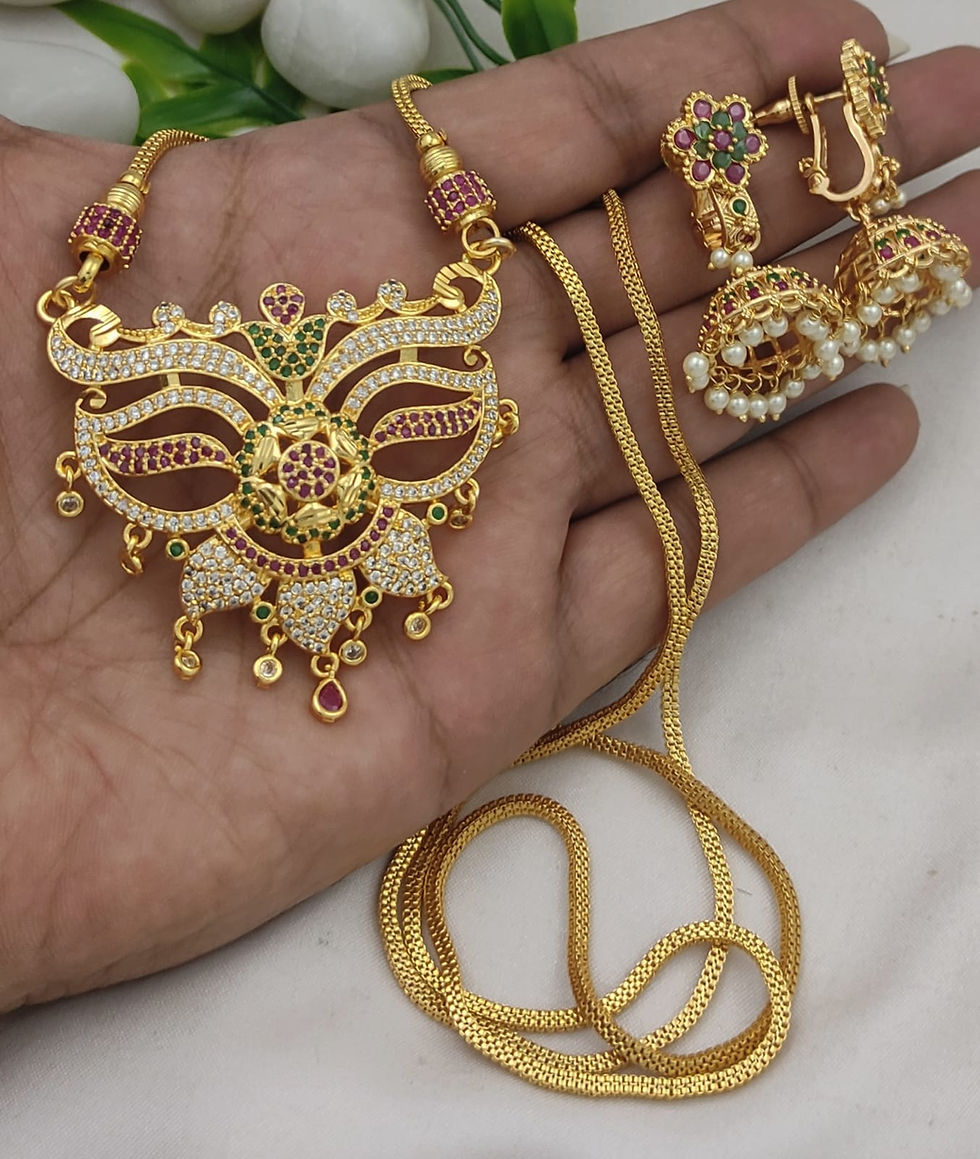 Micro Gold Polish AD Stone Peacock Dollar Chain with Pearl Jhumka