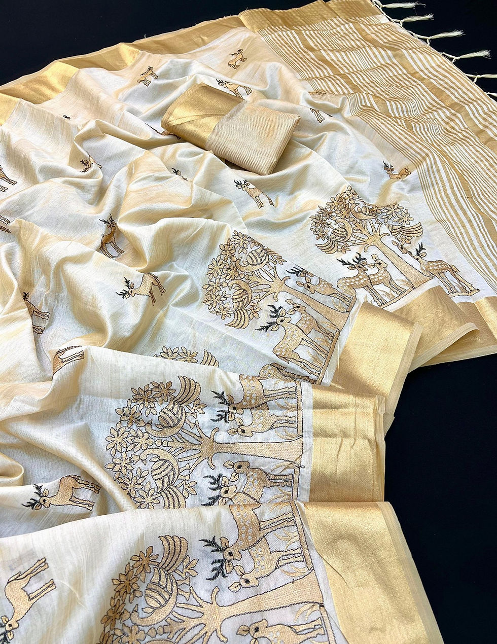 Embroidered Soft Tussar Silk Saree with Zari Blouse