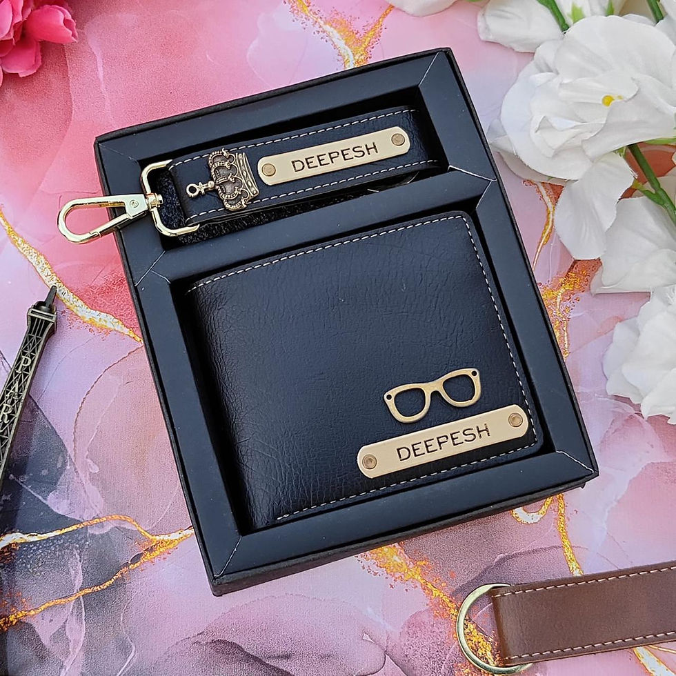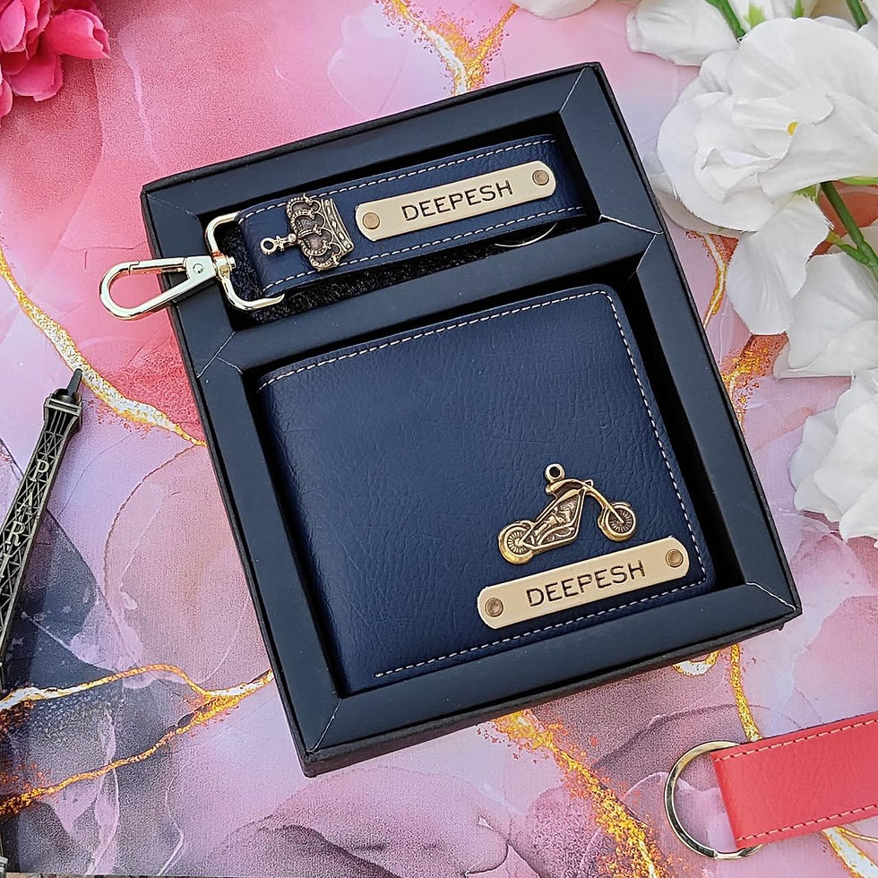Personalized Leather Wallet & Keychain Gift Set