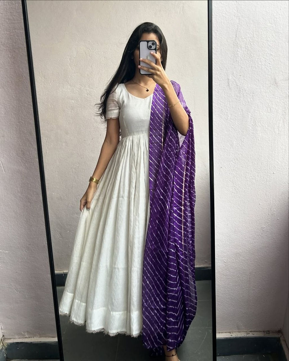 Lehar White Shimmer Gown with Leheriya Dupatta
