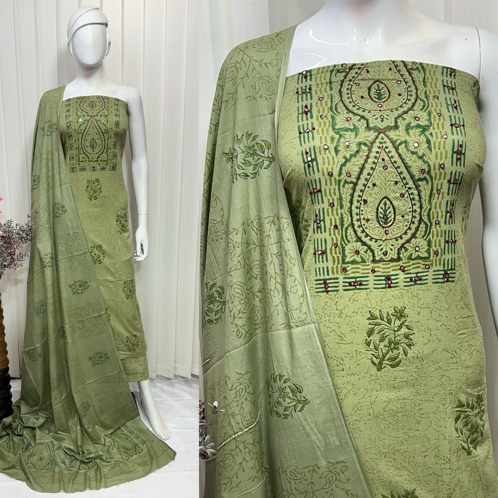 Top: 60/60 Cotton with Neck Embroidery & Block Print (2.5 m)