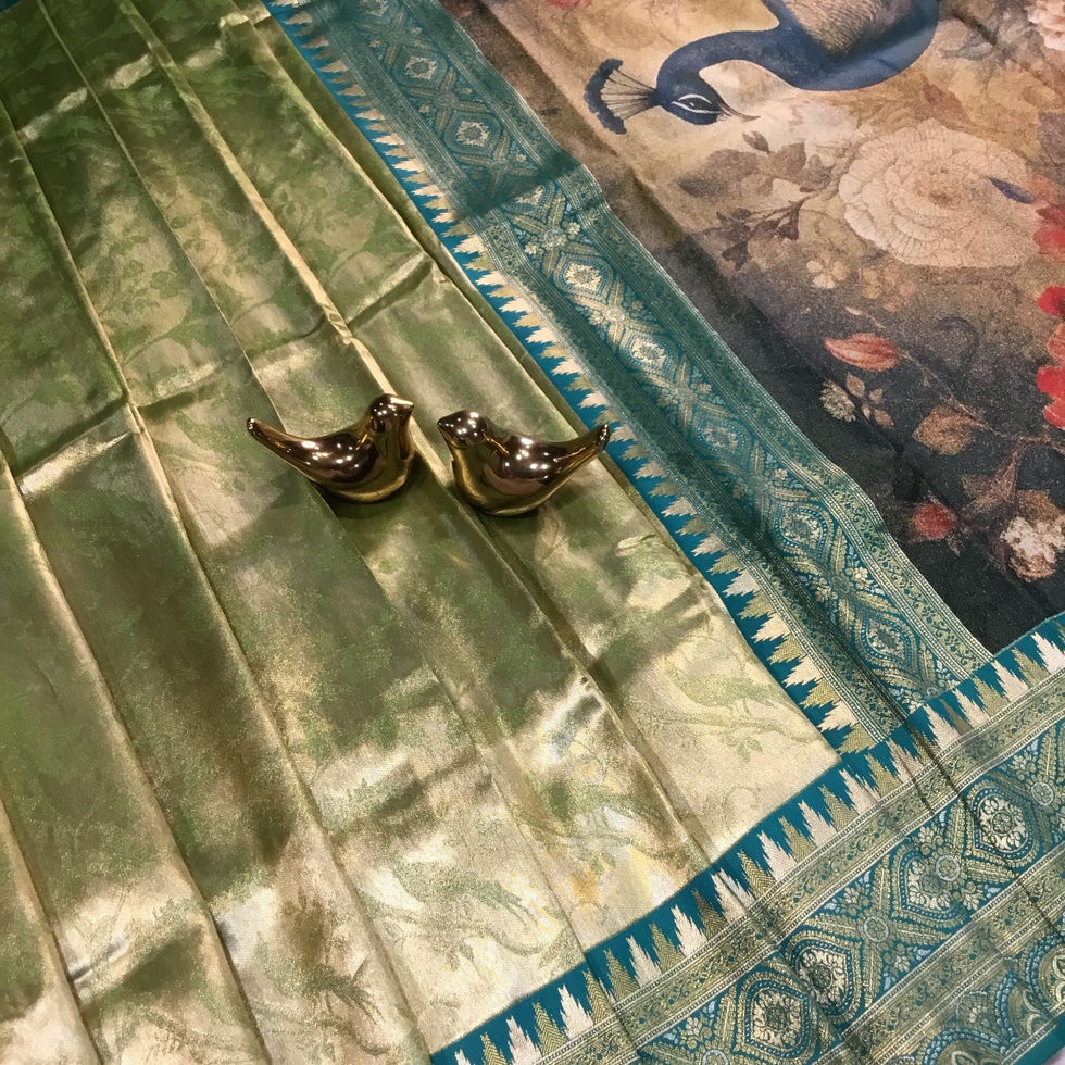 Banarasi Tissue Silk Saree with Peacock Pallu & Jacquard Border
