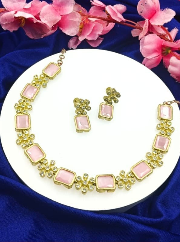 Elegant Kundan & Stone Choker Necklace Set - Pink
