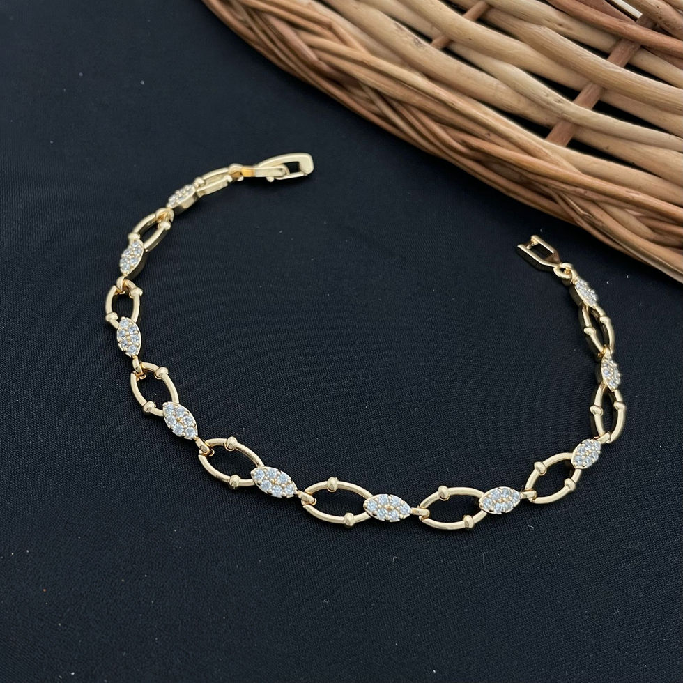 - Elegant & Unique Design: Features a captivating chain of interconnected oval links, with alternating plain gold-tone ovals and those intricately paved with sparkling zirconia stones.
