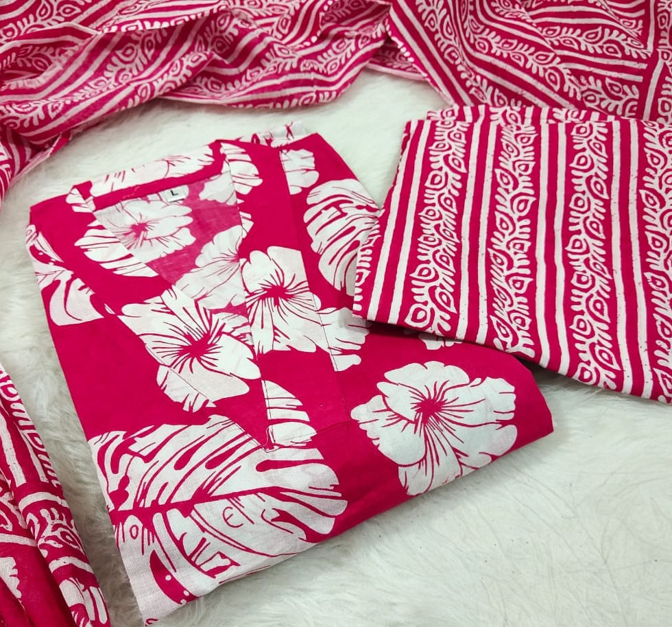 Jaipur Cambric Cotton Kurti Set with Dupatta