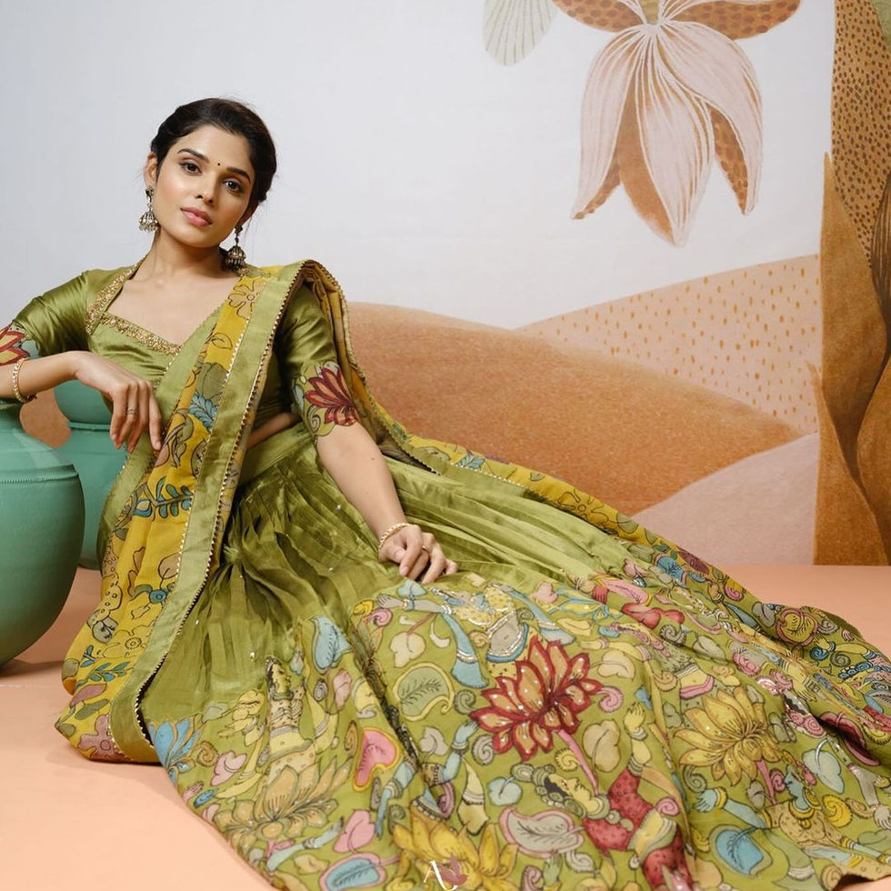 Choli: Tussar silk, Kalamkari print, micro cotton lining, fits up to size 44 stitched