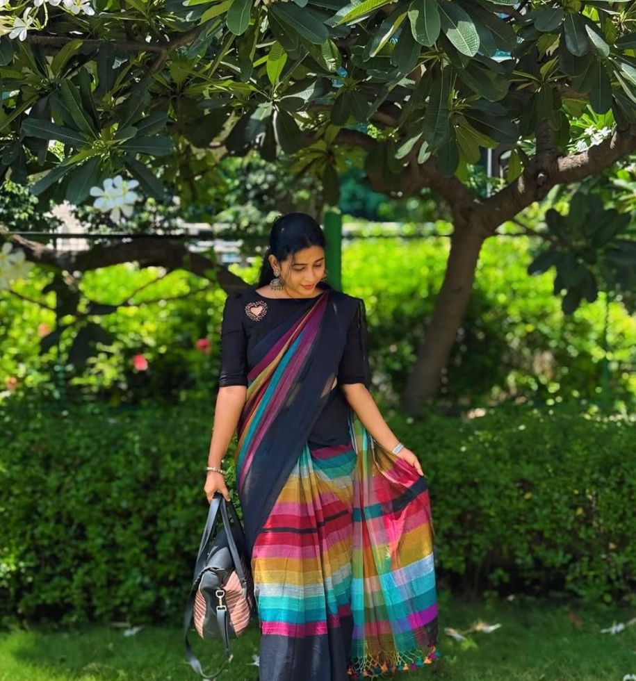 Saree Fabric: Crafted from high-quality plain linen for a natural, comfortable drape