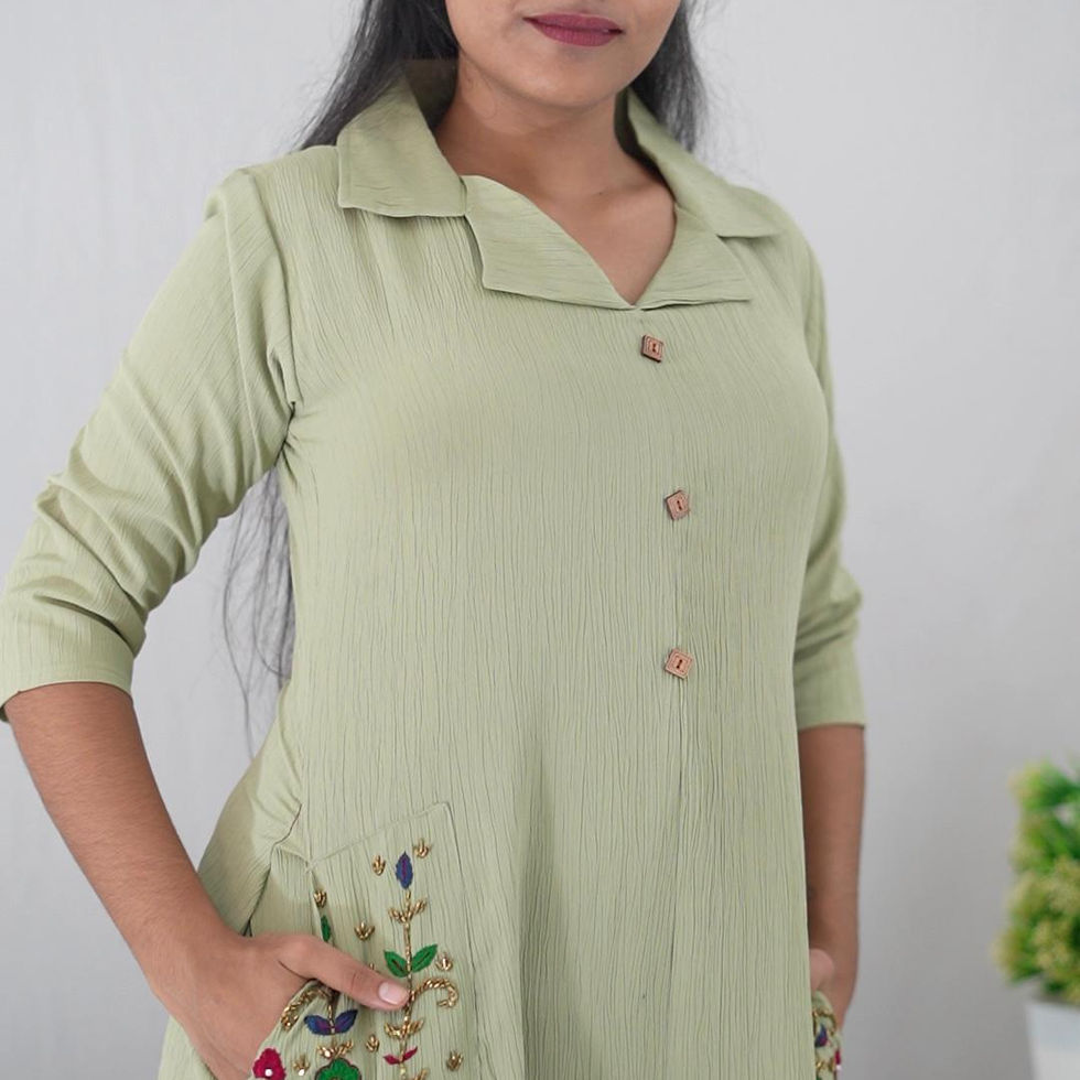 Hand worked Floral Pocket Western Kurti- Pista Green