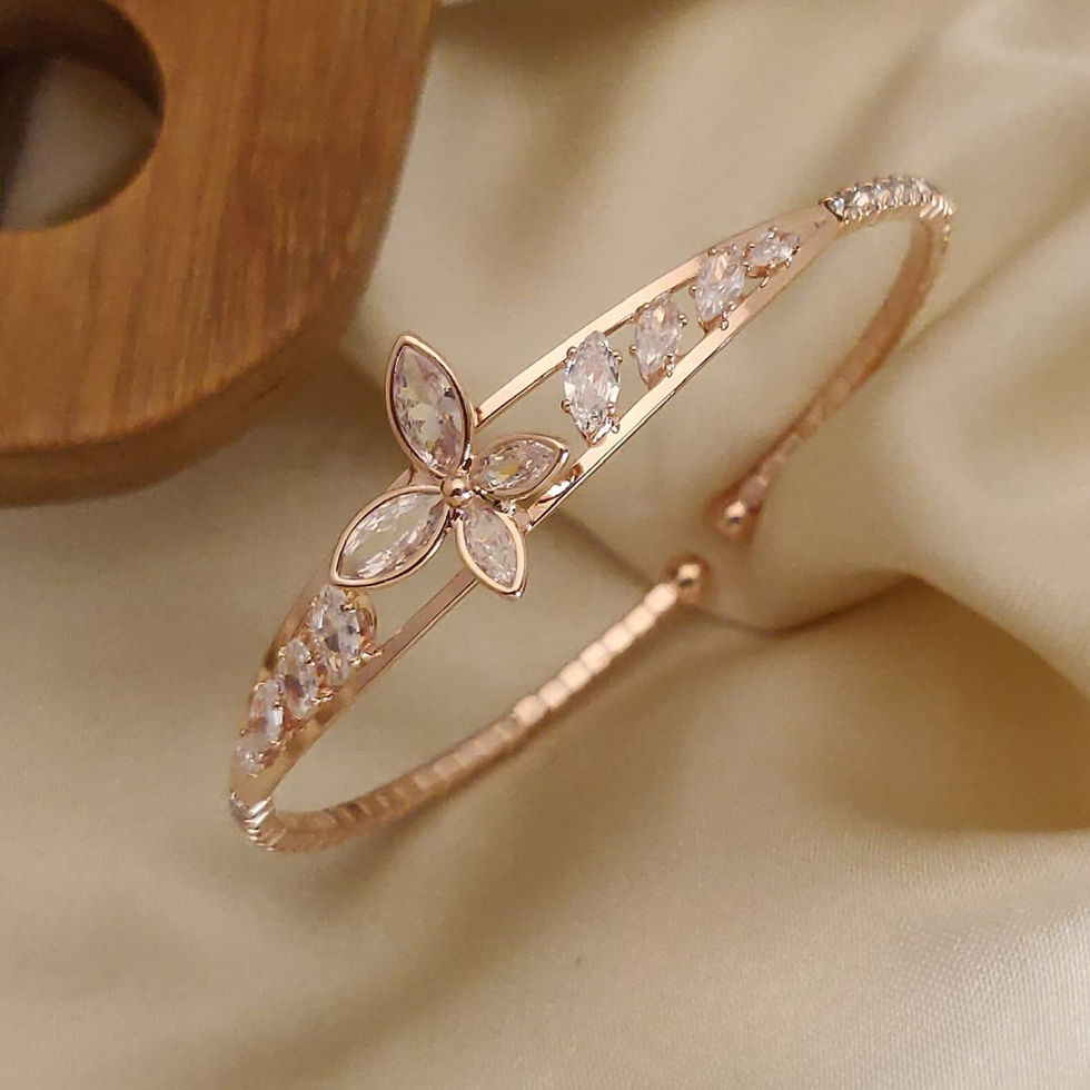 Rose Gold AD Free Size Designer Marquise Floral Kada