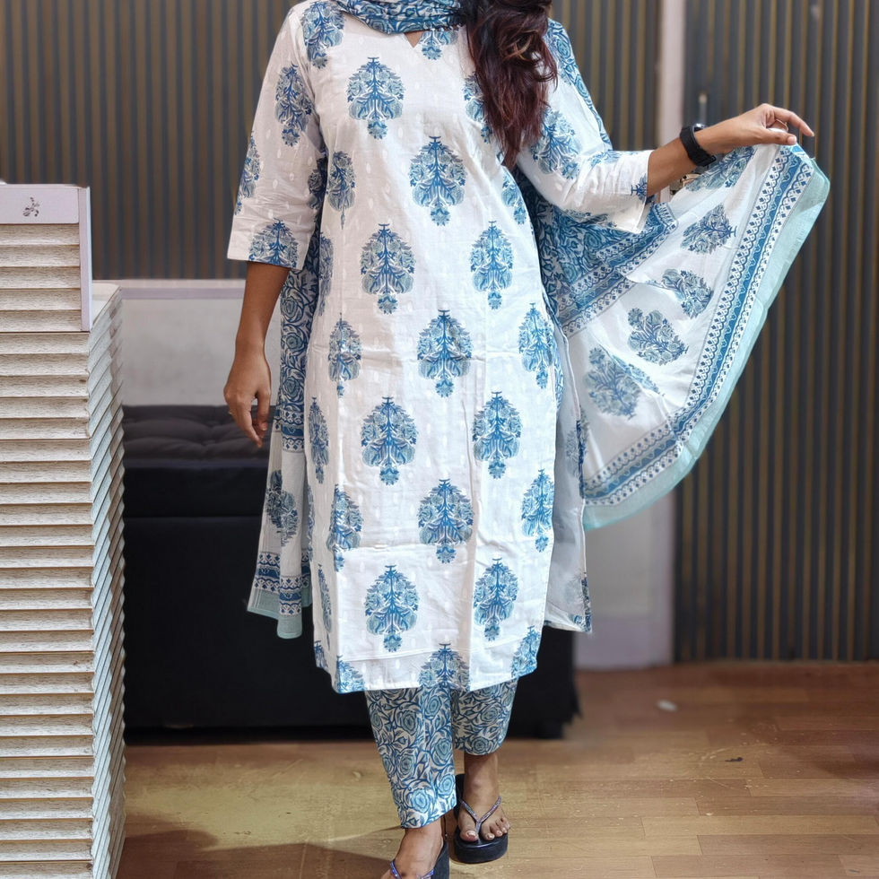 Step into effortless elegance with this beautiful 3-piece churidar set, crafted to keep you cool and stylish all summer long!